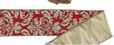 2.5 inch Red Damask Ribbon w/Light Gold Glitter and Gold Fused Back - 10 Yards
