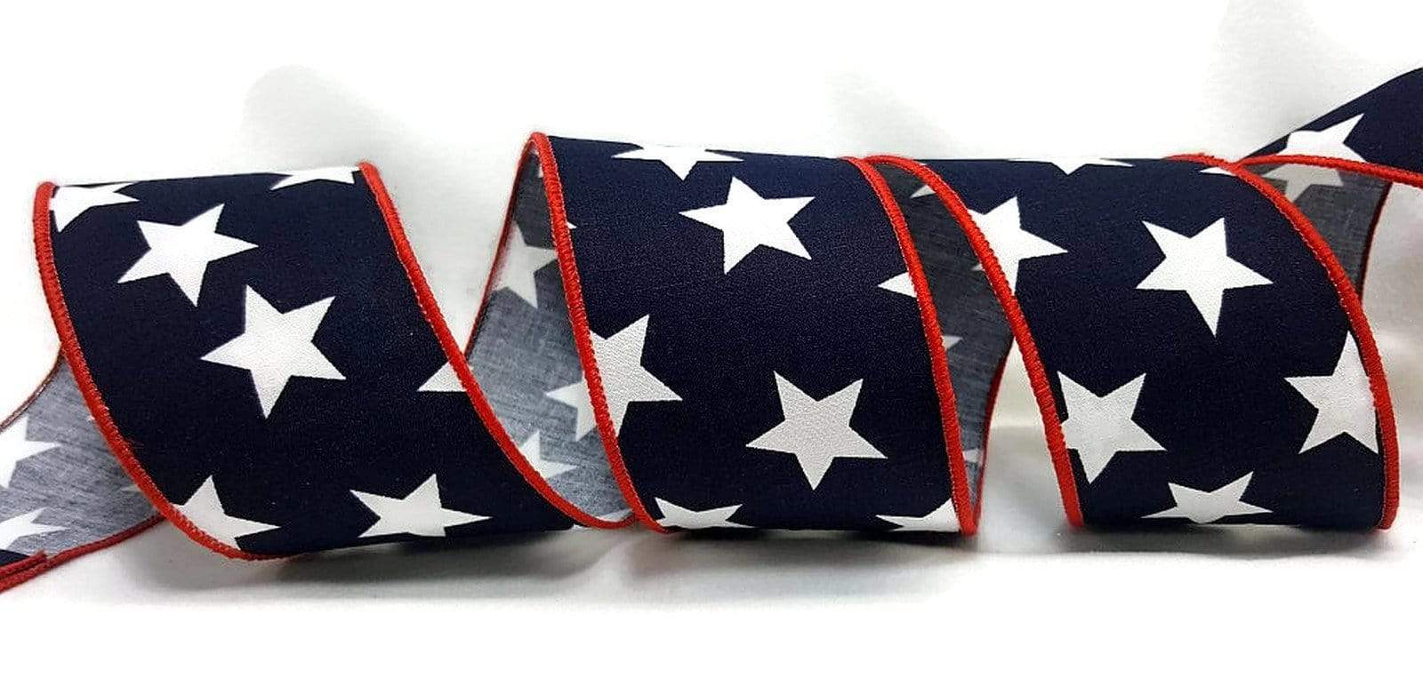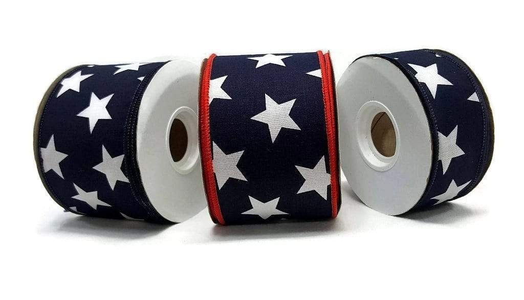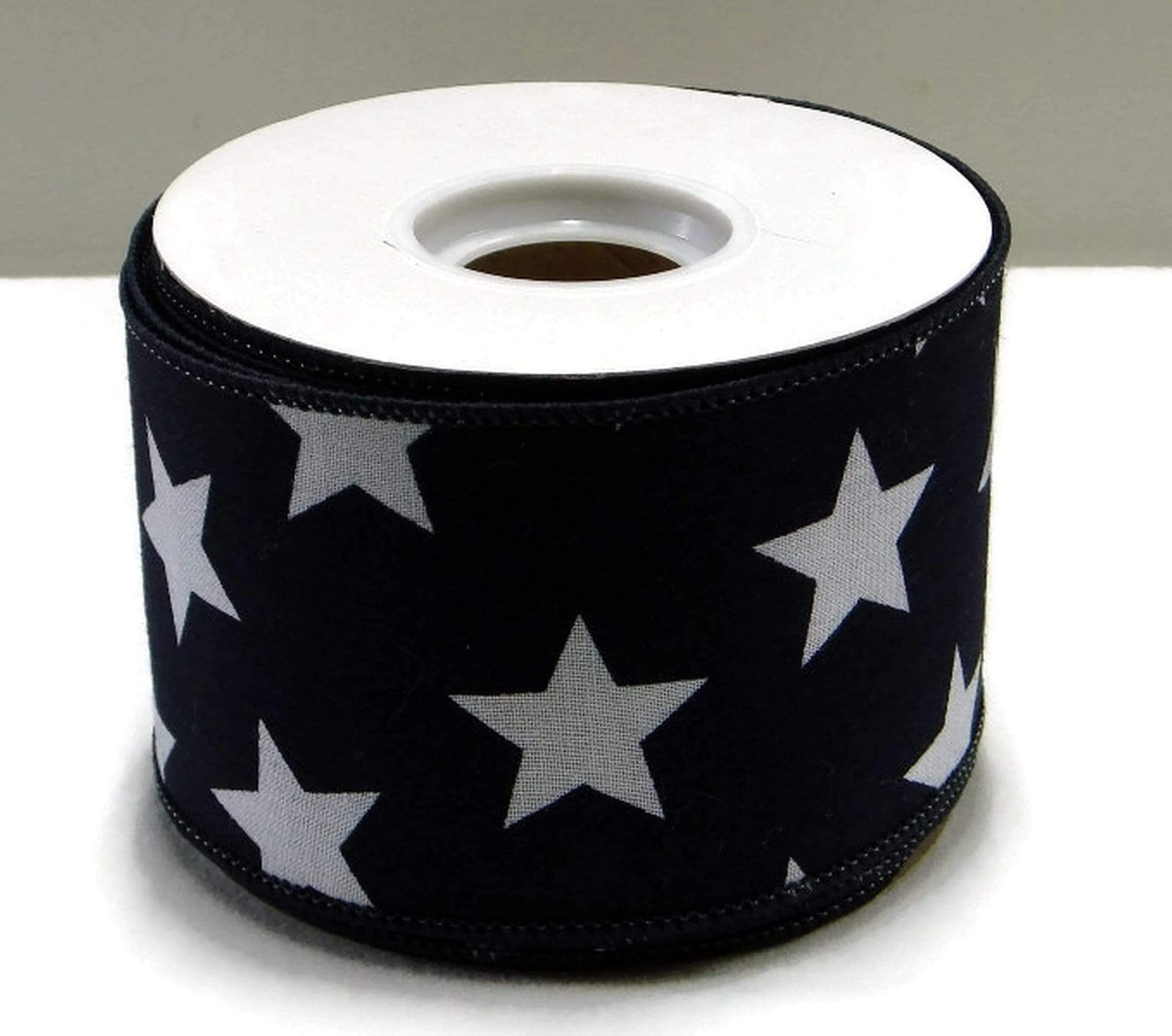 2.5" Wired Blue Canvas Ribbon w/Large White Stars