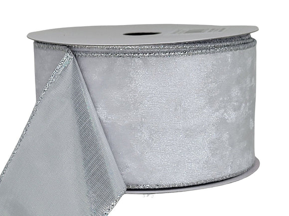 d.stevens 2.5" Platinum Velvet Ribbon with Platinum Edges & Back - 10 Yards