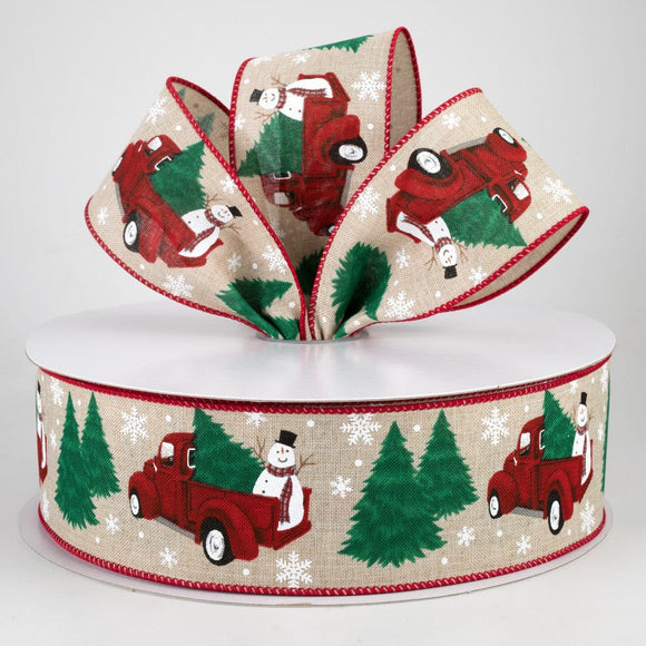 2.5" x 50 yds Vintage Truck with Snowman, Wired Christmas Ribbon