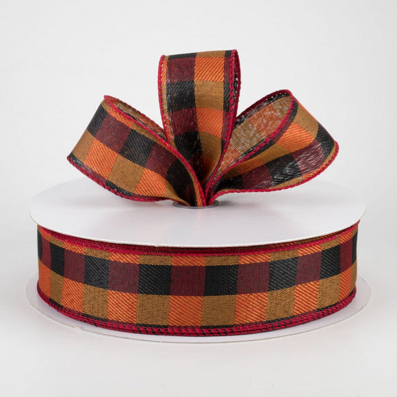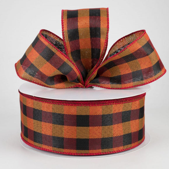 1.5" Orange, Red & Black Buffalo Check Ribbon - Wired Halloween Ribbon - 50 yards