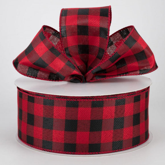 2.5" x 50 yds Red & Black Buffalo Check Ribbon, Wired Farmhouse Christmas Ribbon
