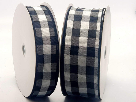Wired Black & White Double Sided Buffalo Check 1.5 inch or 2.5 inch 50 Yard Value Roll
