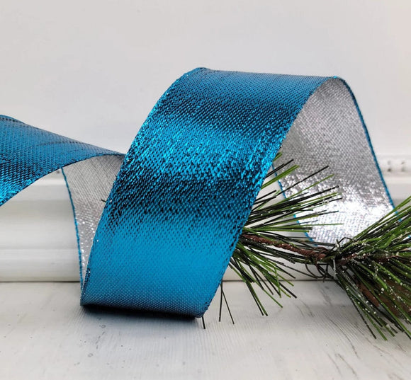 1.5" Metallic Blue / Silver  Reversible Wired Ribbon