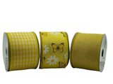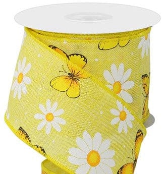 Yellow Butterflies & White Daisies on 2.5" Yellow Canvas Wired Ribbon.