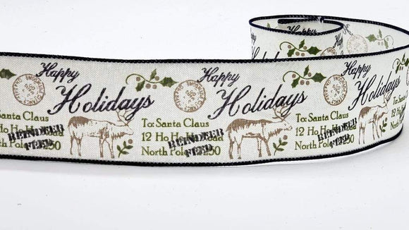 Cream Colored Canvas Post Card to Santa Claus Ribbon - 5 Yards