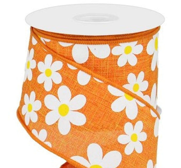 2.5" Orange Canvas Ribbon with White Daisies. The Matching Threaded Wired Edges will help you make perfect bows that will maintain their shape.